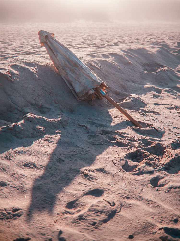 It Was Almost Night by the Beach emerged from 3D-generated images and has since evolved into a practice fully realized through artificial intelligence tools.
